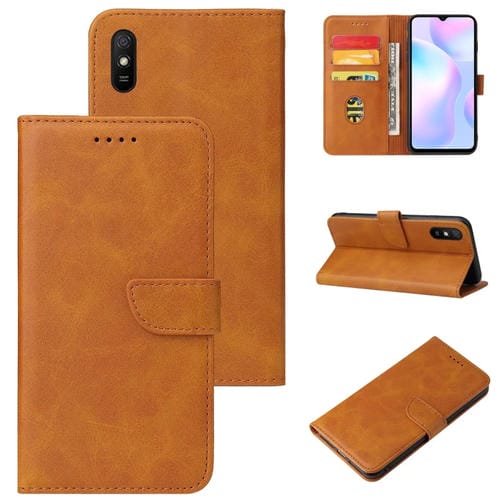 Para Xiaomi Redmi 9A Textura de Textura de Calfe Hebillo Caja de Cuero Horizontal Flip con Soporte y Ranuras para Tarjetas y Billetera (Caqui)