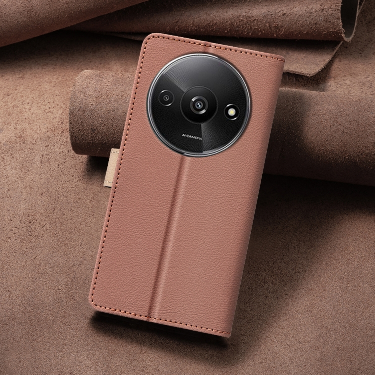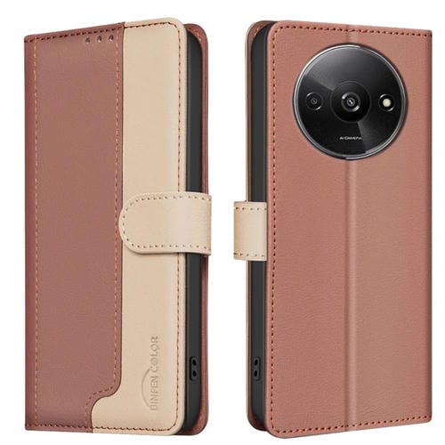 Para Xiaomi Redmi A3 Funda de Teléfono de Cuero Antirrobo Rfid a Juego de Colores (Marrón)