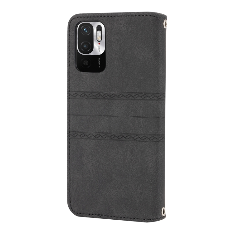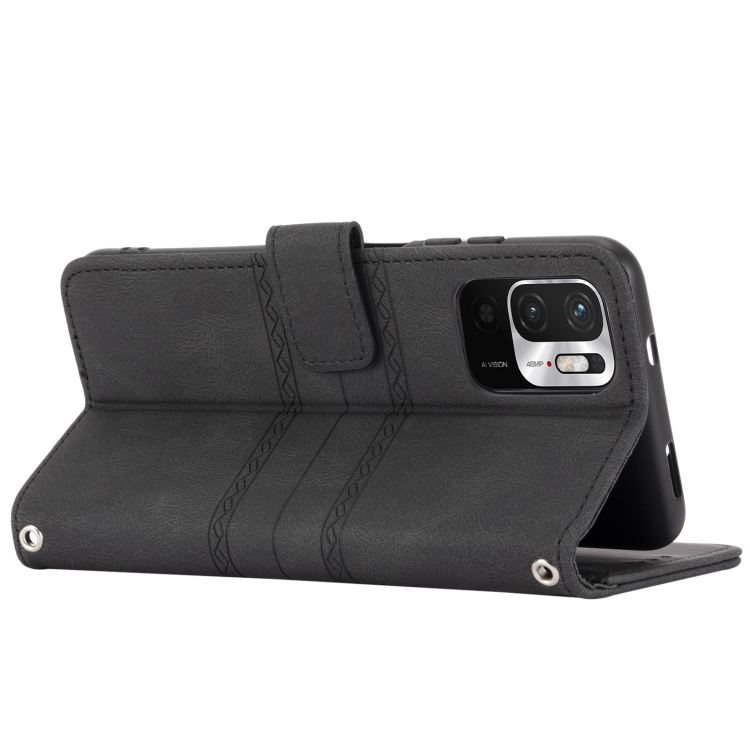 Para Xiaomi Redmi Note 10 5G Hebilla Magnética con Rayas En Relieve Pu + TPU Funda de Cuero Horizontal Flip con Soporte y Ranura para Tarjetas y Marco de Fotos y Sling (Negro)