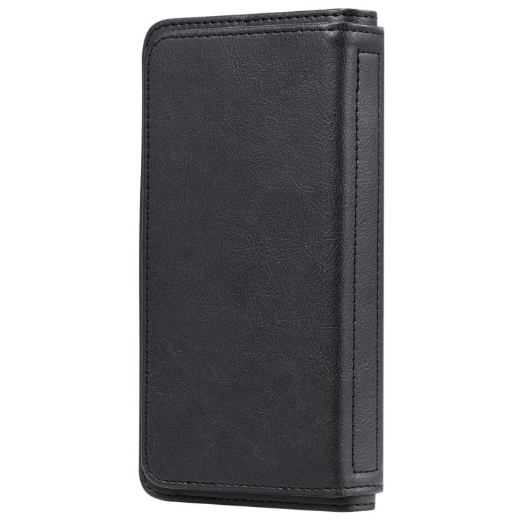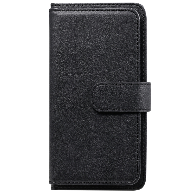 Para Xiaomi Redmi Note 10 5G Multifuncional Magnético Hebilla de Cobre Horizontal Flip Funda de Cuero de Color Sólido con 10 Ranuras para Tarjetas y Billetera y Soporte y Marco de Fotos (Negro)