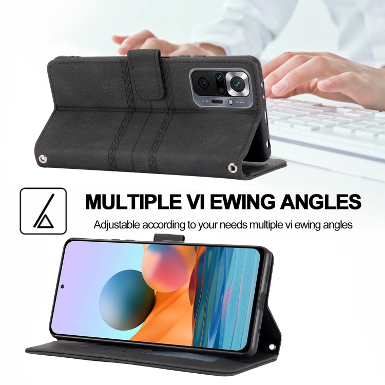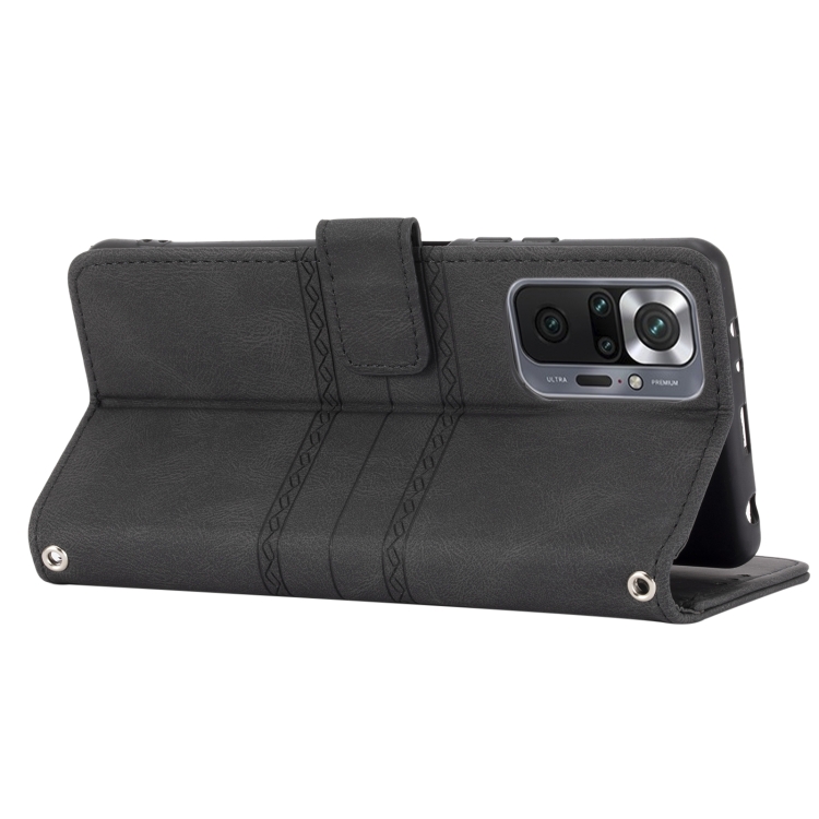 Para Xiaomi Redmi Note 10 Pro Max Hebilla Magnética de Rayas En Relieve Pu + TPU Funda de Cuero Horizontal Flip con Soporte y Ranura para Tarjetas y Marco de Fotos y Sling (Negro)