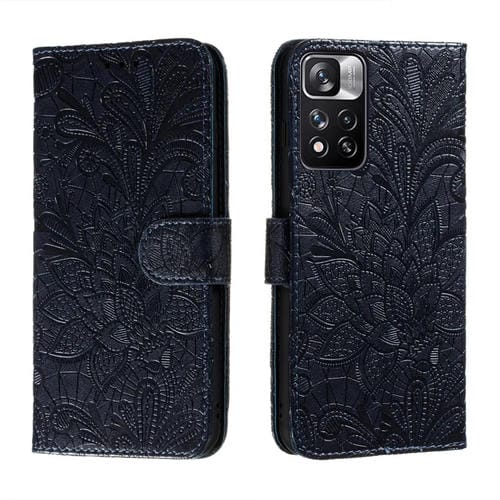 Para Xiaomi Redmi Note 11 Pro Encace Flower Flower Funda Telefónica con Soporte y Ranuras para Tarjetas y Marco de Fotografía (Azul Oscuro)