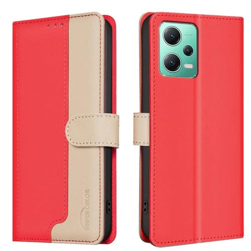 Para Xiaomi Redmi Note 12 5G Global / Poco X5 Funda para Teléfono de Cuero Antirrobo Rfid a Juego de Colores (Rojo)