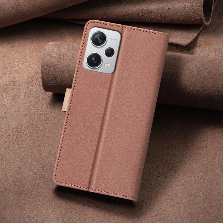 Para Xiaomi Redmi Note 12 Pro + Funda de Teléfono de Cuero Antirrobo Rfid a Juego de Colores Globales (Marrón)