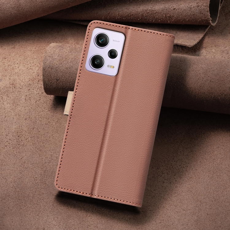 Para Xiaomi Redmi Note 12 Pro Funda de Teléfono de Cuero Antirrobo Rfid a Juego de Colores Globales (Marrón)