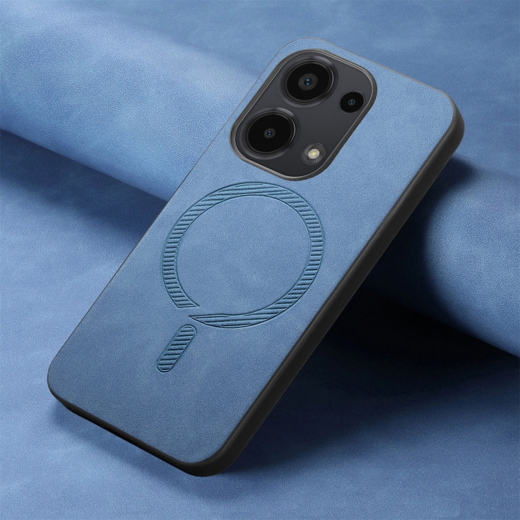 Para Xiaomi Redmi Note 13 5G Color Sólido Retro Magsafe Pu Funda para Teléfono con Contraportada (Azul)