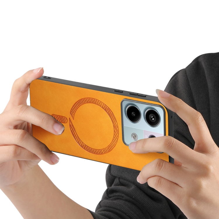 Para Xiaomi Redmi Note 13 Pro 5G Color Sólido Retro Magsafe Pu Funda para Teléfono con Contraportada (Amarillo)