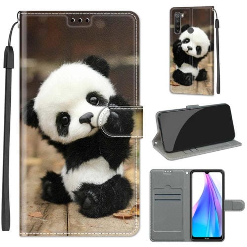 Para Xiaomi Redmi Note 8T Dibujo de Color Voltaje Dibujo Magnético Cierre de Cuero Horizontal Flip Pu Funda con Soporte y Ranuras para Tarjetas (Panda de Madera C18 Panda)