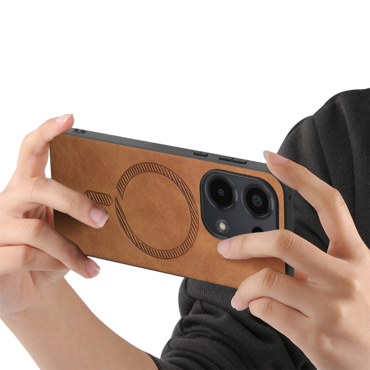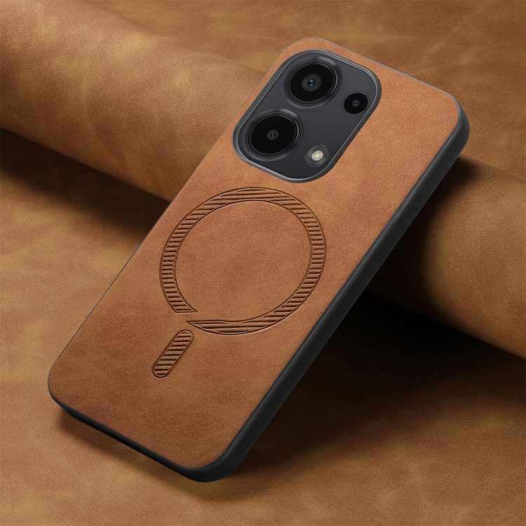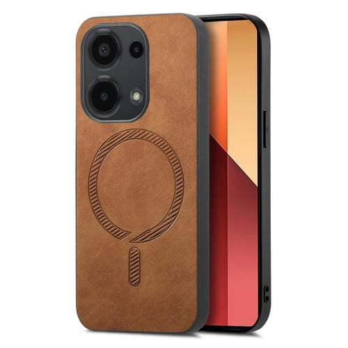 Para Xiaomi Redmi Turbo 3 5G Color Sólido Retro Magsafe Pu Funda para Teléfono con Contraportada (Marrón)
