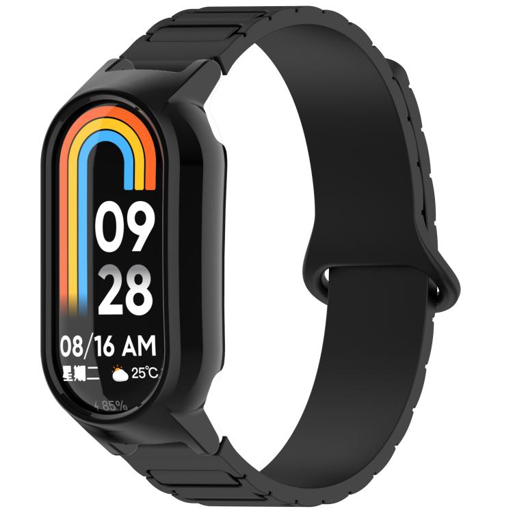Para Xiaomi Smart Band 9/9 NFC Watch Case Correa de reloj de silicona magnética en forma de I integrada (negro + negro)