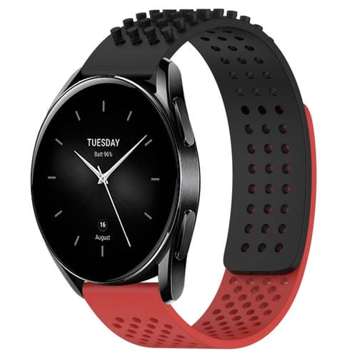 Correa de Silicona para Xiaomi Watch S2 46mm 22mm con Agujeros y Puntos 3D Transpirables (Negro + Rojo)