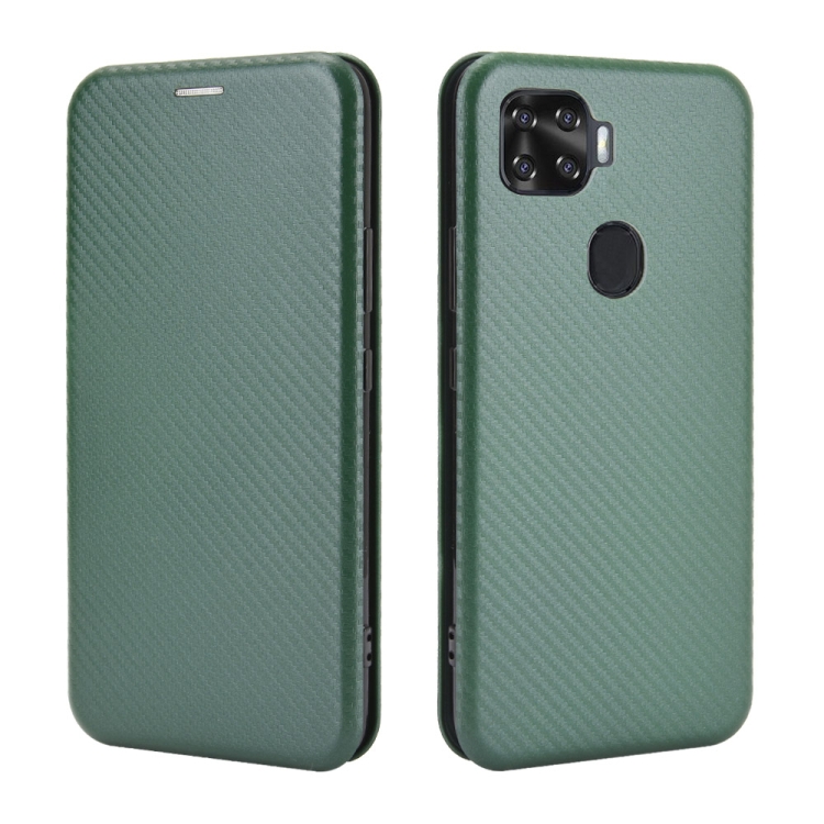 Para ZTE A1 ZTG01 5G Textura de fibra de carbono Flip horizontal magnético TPU + PC + Funda de cuero PU con ranura para tarjeta (Verde)