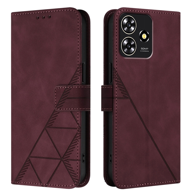 Funda de Cuero para ZTE Blade A73 4G Crossbody con Tapa En Relieve 3D (Rojo Vino)