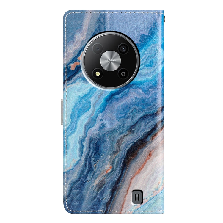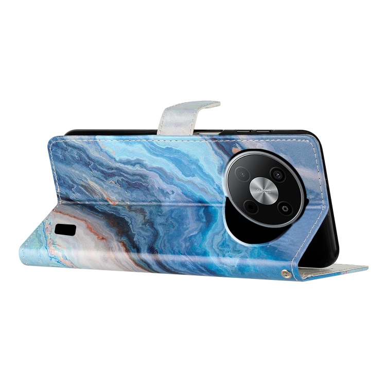 Funda de Cuero para ZTE Blade A73 5G con Dibujo Coloreado Mármol Azul