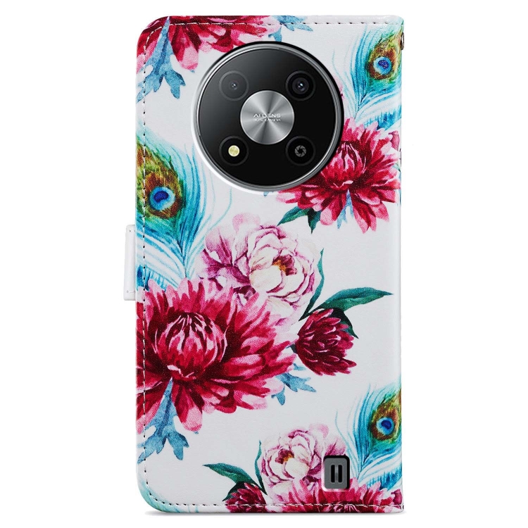 Funda de Cuero para ZTE Blade A73 5G con Tapa Horizontal y Patrón Pintado (Flor de Pavo Real)