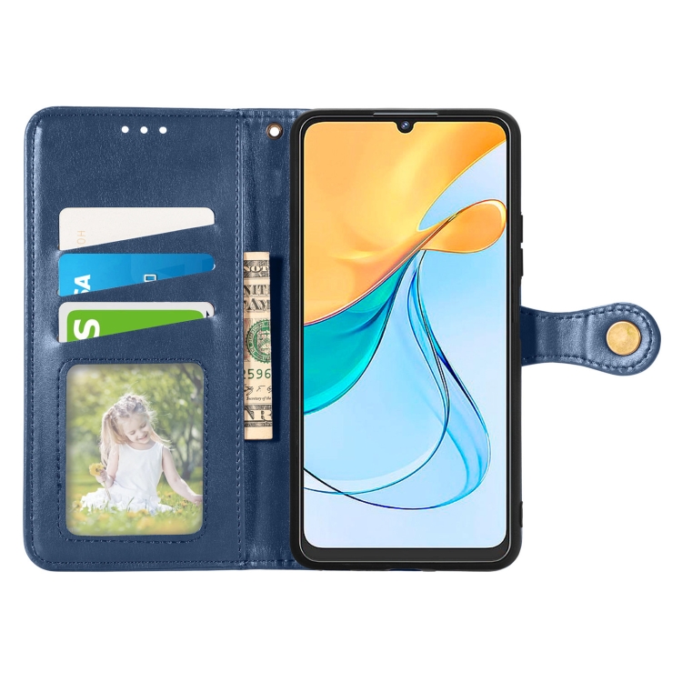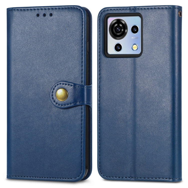Funda de Cuero con Hebilla para ZTE Blade V50 Vita Color Sólido Retro (Azul)