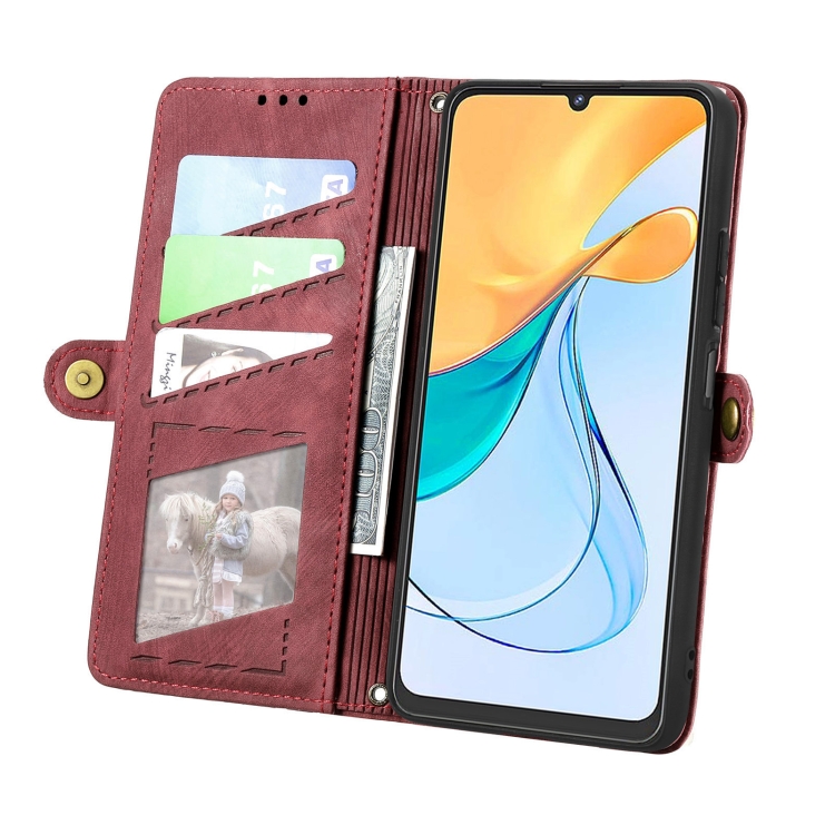 Funda de Cuero para ZTE Blade V50 Vita con Hebilla Lateral y Billetera con Cremallera (Rojo)