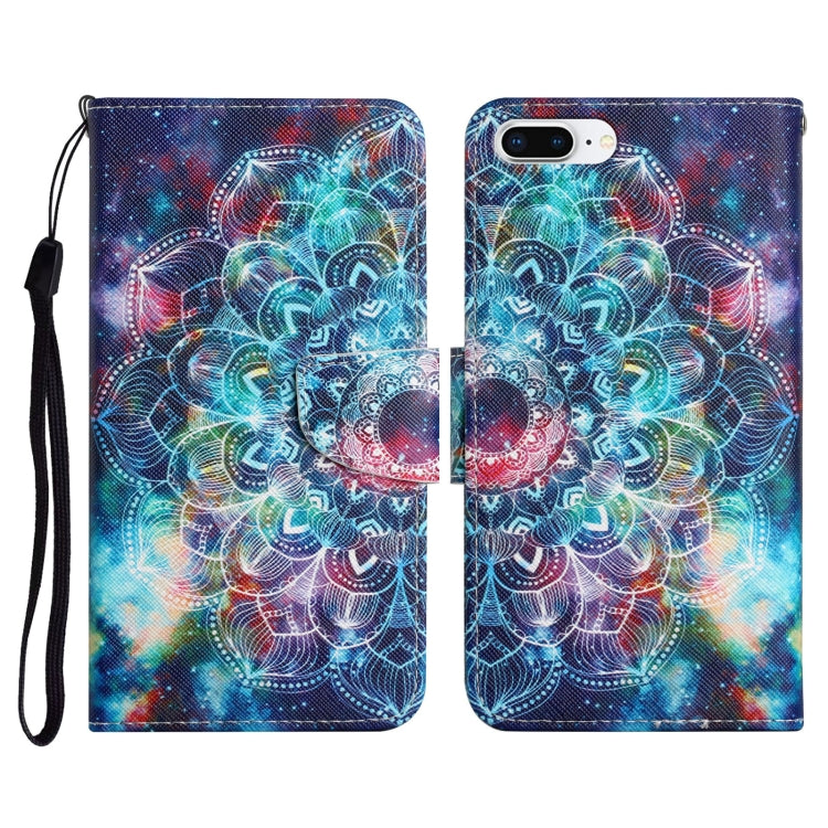 Funda de Cuero iPhone 8 Plus y 7 Plus Patrón Pintado con Soporte y Ranura para Tarjeta y Billetera (Starry Mandala)