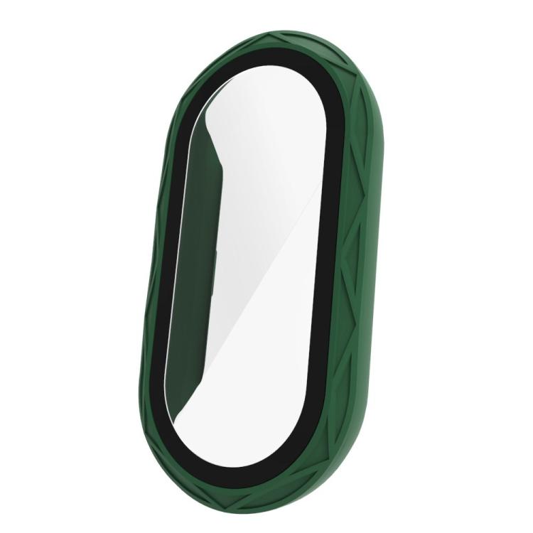 Película de vidrio templado con textura de nido de pájaro para Xiaomi Smart Band 9/9/8 NFC, funda de PC integrada (verde oscuro)