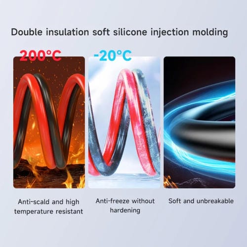 Cuenta con doble aislamiento de silicona suave y materiales resistentes que proporcionan protección contra sobreCargas y garantizan la seguridad del usuario.