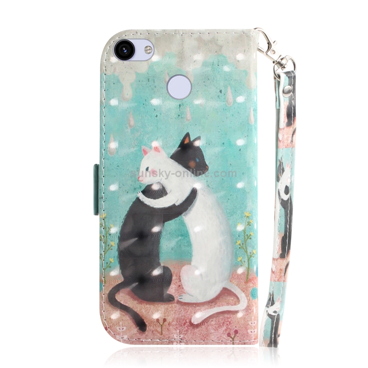Funda de Cuero con Tapa Horizontal Google Pixel 3A XL Patrón Gato 3D Blanco y Negro con Soporte y Ranuras para Tarjetas