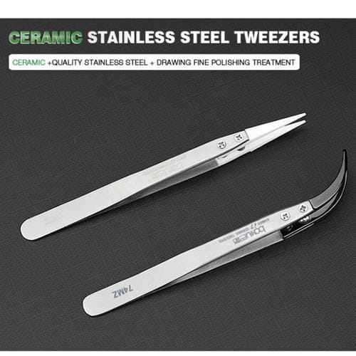 Las Pinzas Rectas de Acero Inoxidable Baku BA-I7-72MZ son una Herramienta precisa diseñada para trabajos de electrónica, especialmente compatibles con dispositivos de la marca Acer. Este modelo está fabricado con acero inoxidable combinado con cerámica, garantizando alta durabilidad y resistencia a la corrosión gracias a su tratamiento antiácido y propiedades magnéticas no corrosivas. Con una dureza de 45HRC, estas pinzas ofrecen un rendimiento fiable en tareas que requieren manipulación delicada y exacta, como la Reparación y ensamblaje de Componentes electrónicos.