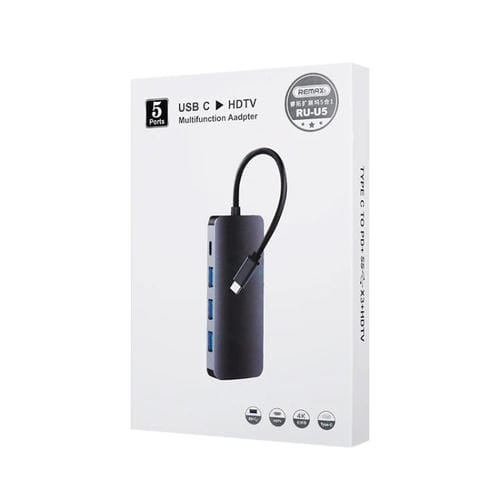 Hub Station Tipo-C USB-C 5 en 1 Remax Ru-U5 Multifunción (Gris Oscuro)