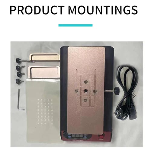 - Plataforma calefactable que facilita la eliminación del Adhesivo y protege la Pantalla durante la reparación