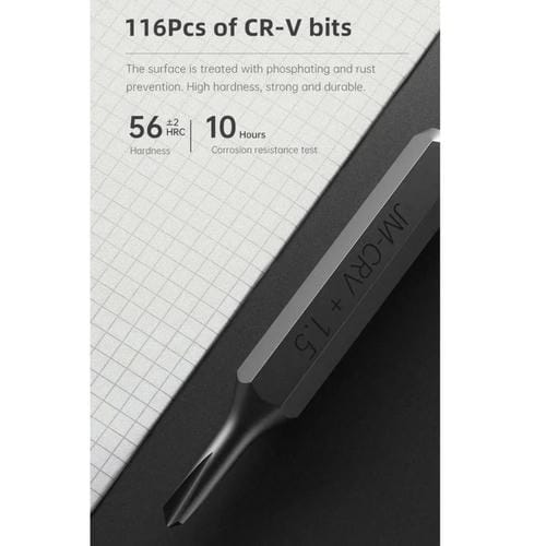 - Incluye 145 Piezas: 116 bits (Hex, Crosshead, Torx, Slotted, Pentalobe, Cuadrado, entre otros), barra de palanca, ventosa, pinzas, eje Flexible y magnetizador; destornillador ergonómico con cabeza magnética y Tapa giratoria antideslizante; Caja de almacenamiento ABS de alta densidad con ranuras para asegurar los componentes