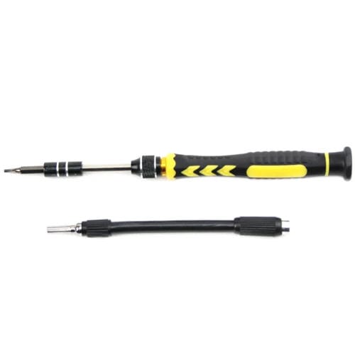 - Incluye 38 Piezas: mango ergonómico, barra extensible, 28 puntas de destornillador (hexagonal, PH, ranura, Pentalobe, forma de U, HEX), pinzas, herramientas de apertura plásticas, mini ventosa y aguja