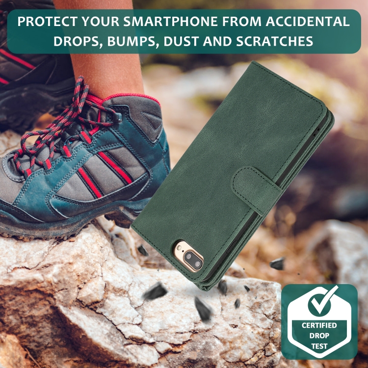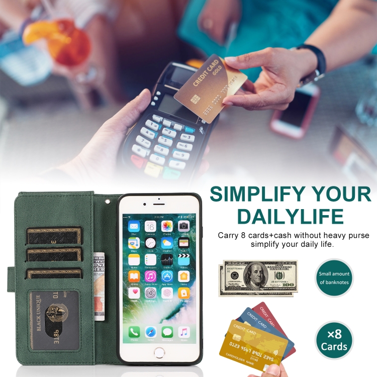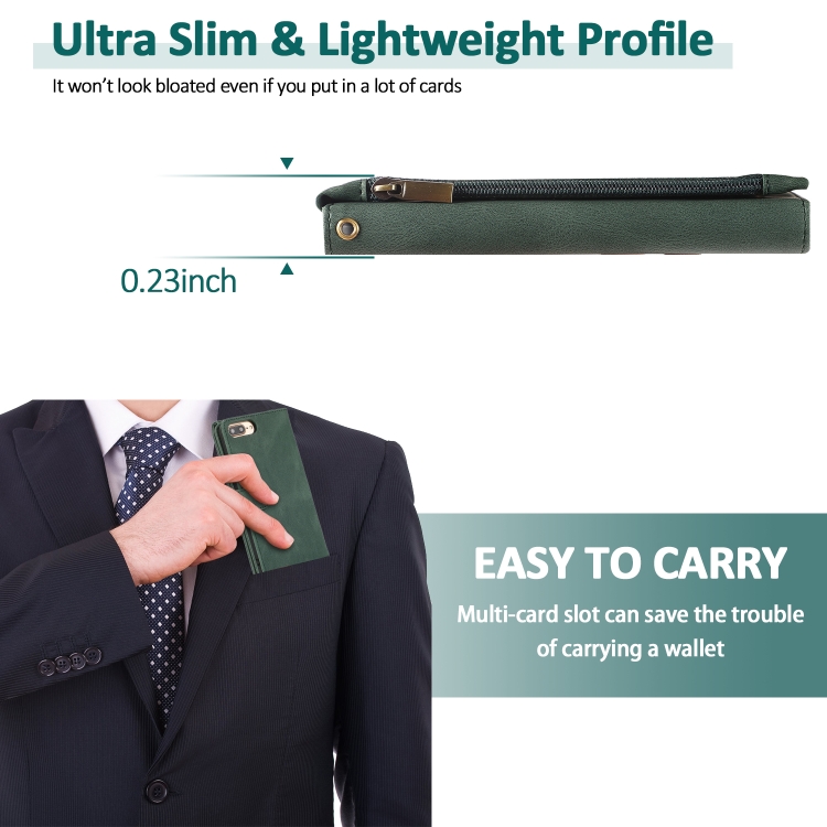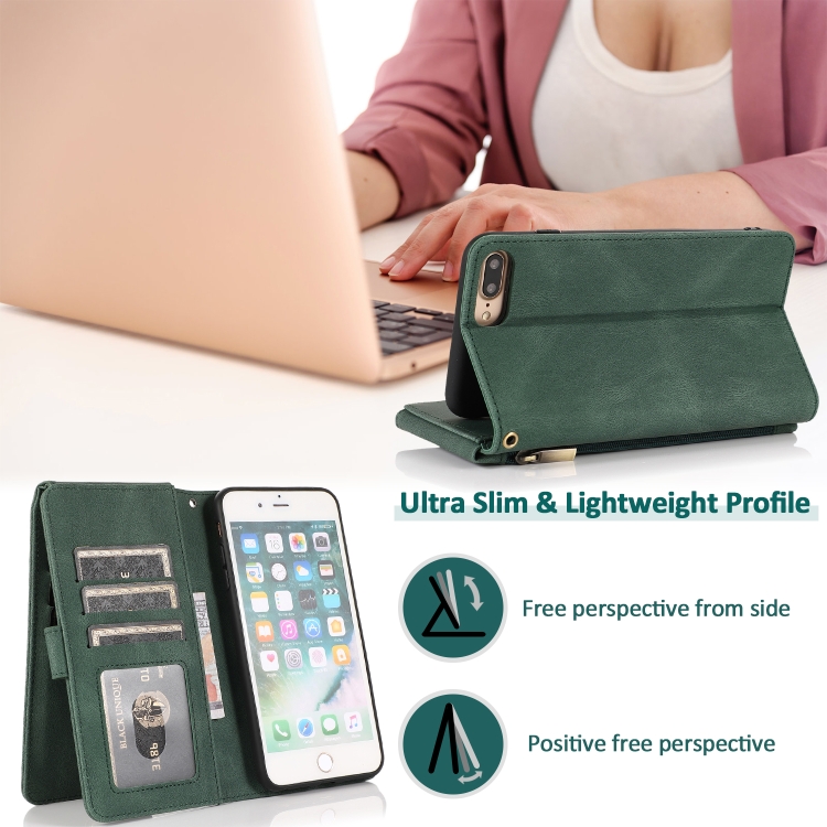 Funda de Cuero Skin-Feel Crazy Horse Texture Zipper Wallet Bag para iPhone 6 Plus con Tapa Horizontal Soporte Ranuras y Cordón (Verde Oscuro)
