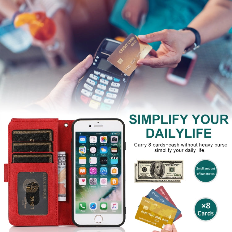 Funda Cuero Skin-Feel Crazy Horse Wallet Bag iPhone 6 con Tapa Horizontal Soporte Ranuras y Cordón (Rojo)