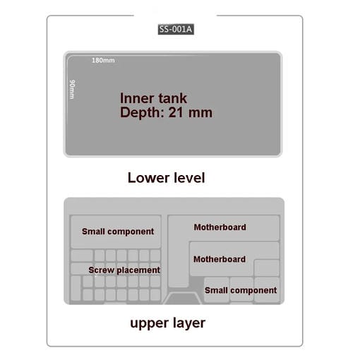 La capa superior está diseñada para alojar componentes pequeños como Placas Base, tornillos y fichas, facilitando su organización durante la reparación.