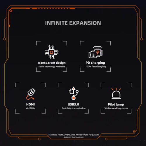 • Salidas: HDMI 4K a 30Hz, VGA 1080P a 60Hz, USB 3.0 con velocidad de transferencia de hasta 5 Gbps, USB 2.0 a 480 Mbps, audio 3.5 mm con entrada y salida, Power Delivery 3.0 con Carga de hasta 100W y datos simultáneos