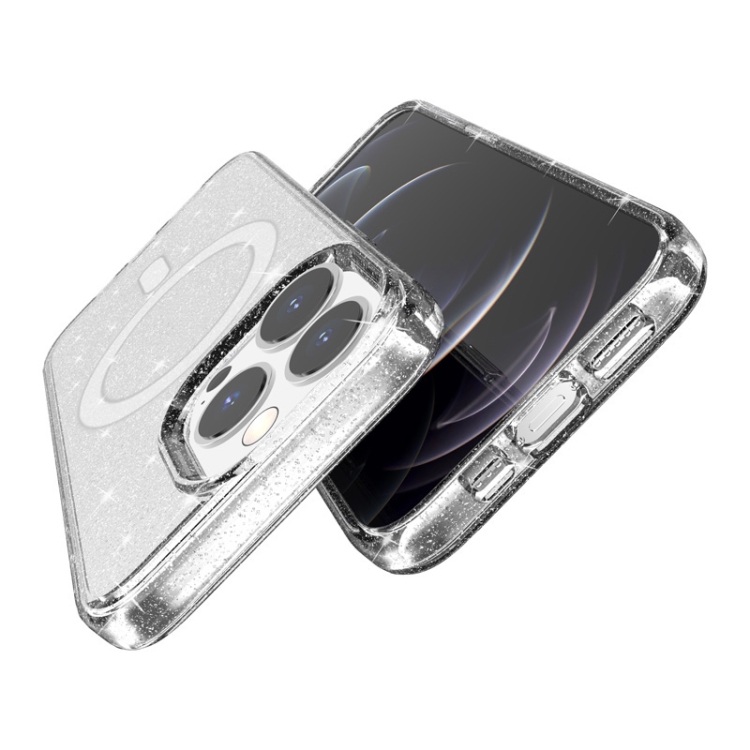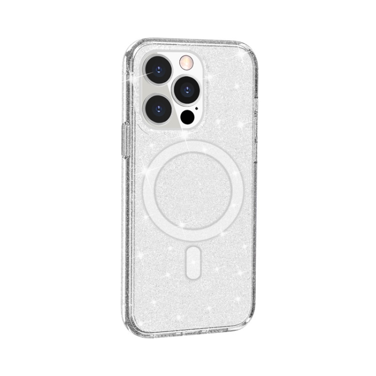 Funda de teléfono Terminator Style Glitter Powder Magsafe para iPhone 13 Pro Max (Blanco)