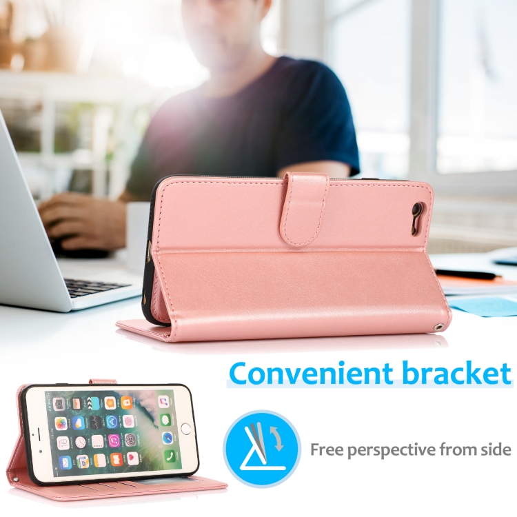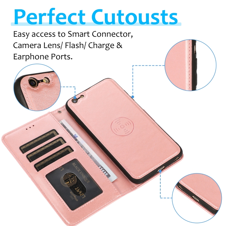 Funda de Cuero 2 en 1 iPhone 6S / 6 Cubierta Magnética Desmontable con Soporte y Ranuras (Oro Rosa)