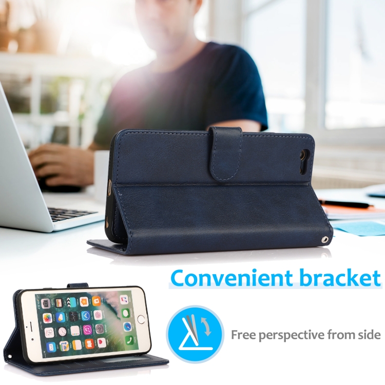 Funda de Cuero 2 En 1 Textura de la Pantorrilla para iPhone 6S / 6 con Soporte y Ranuras (Azul)