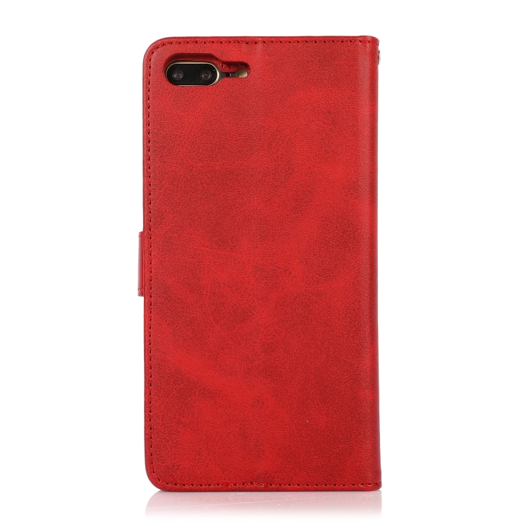 Funda de Cuero 2 En 1 Textura de la Pantorrilla para iPhone 8 Plus / 7 Plus Cubierta Posterior Magnética con Soporte y Tarjetero (Rojo)