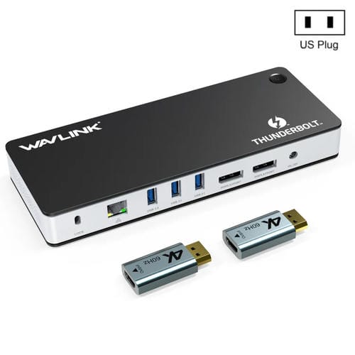 - 1x Estación de acoplamiento Wavlink Utd21H Thunderbolt 3 60W Carga host 11 en 1 Puertos Pantalla dual 4K (Enchufe de EE.UU)
