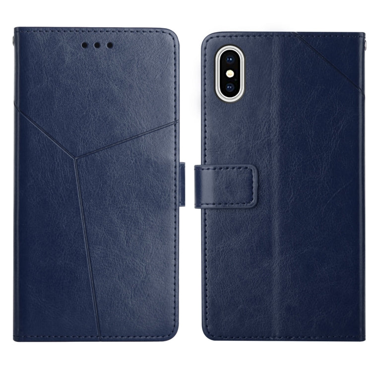 Funda de teléfono Y para iPhone Xs X con tapa horizontal soporte ranuras tarjetas cartera marco foto (Azul)