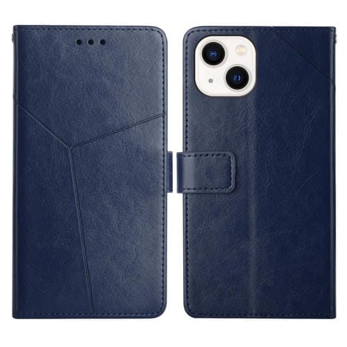 Caja del Teléfono Y Costura Tapa Horizontal con Soporte y Tragamonedas para iPhone 13 Mini (Azul)