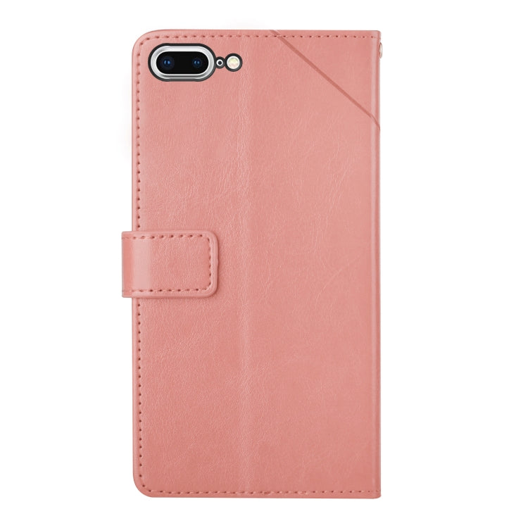 Caja del Teléfono Y Costura Tapa Horizontal con Soporte Tragamonedas Tarjetas Billetera y Marco Fotografía para iPhone 8 Plus / 7 Plus (Rose Gold)