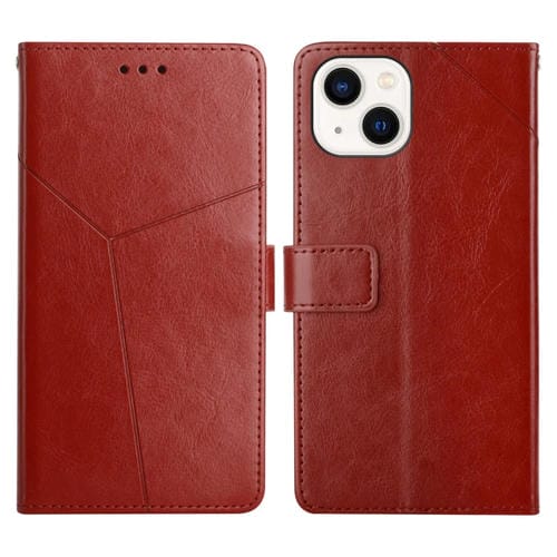 Funda de teléfono Y Costura con Soporte, Tragamonedas, Cartera y Marco para iPhone 13 Mini (Brown)