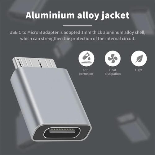 El Adaptador convertidor USB-C Hembra a USB 3.0 Micro B Macho Junsunmay está diseñado para facilitar la Conexión entre dispositivos con Puerto USB-C o Thunderbolt 3 y Discos duros externos Portátiles con interfaz Micro USB 3.0 B. Este Adaptador permite la transferencia rápida y estable de datos, así como la Carga eficiente, eliminando la necesidad de utilizar dongles o Adaptadores Adicionales. Su diseño compacto y Portátil es ideal para usuarios que requieren una solución práctica para conectar Discos duros externos a Computadoras de escritorio, Portátiles o tabletas modernas con Puertos USB-C.