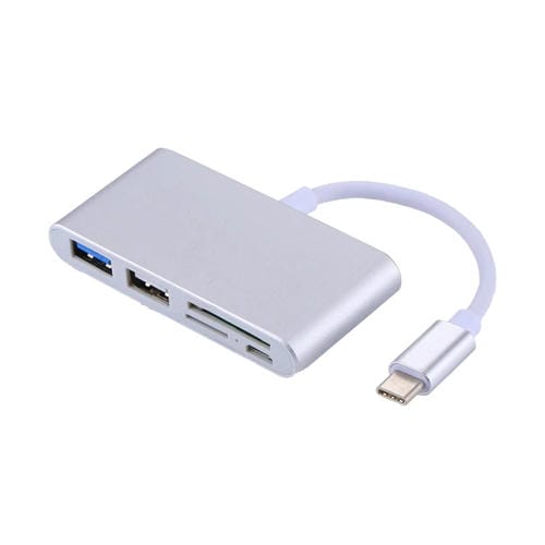 - 1x Adaptador Lector de Tarjetas 5 en 1 Micro SD SD USB 3.0 USB 2.0 Micro USB a USB-C OTG Combo Plateado