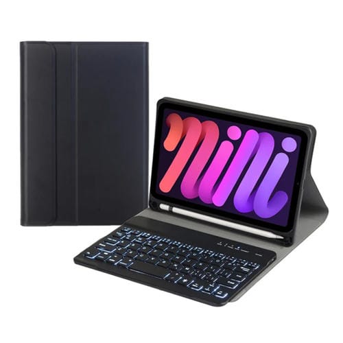 Funda de Cuero con Teclado A06Bs Luz de Fondo Soporte Ranura Bolígrafo para iPad Mini 6 (Negro)