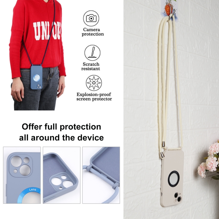 Funda Acrílico Hollow Out con Cordón para iPhone 13 Mini (Beige)