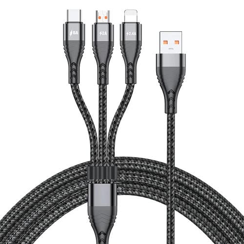 Cable 3 en 1 ADC-138 66W USB A 8 Pin Micro USB USB-C Carga Rápida (Negro)