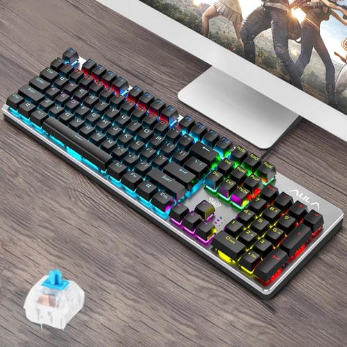 - 1x Teclado Mecánico Aula S2016 104 Teclas Interruptor Azul Panel de Metal USB para Juegos con Cable 1,6 m