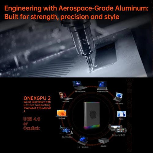 - Compatible con dispositivos que soportan eGPU y Conexión OcuLink, USB-C 4.0, USB-A y Gigabit Ethernet